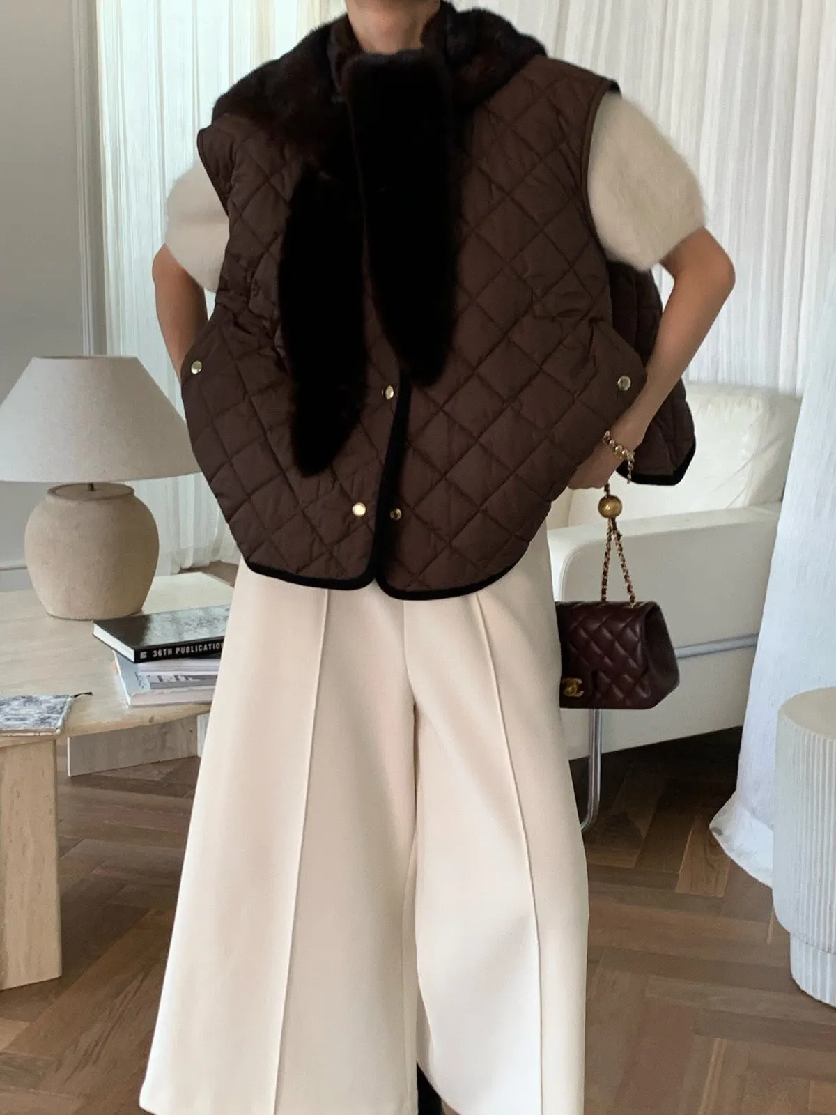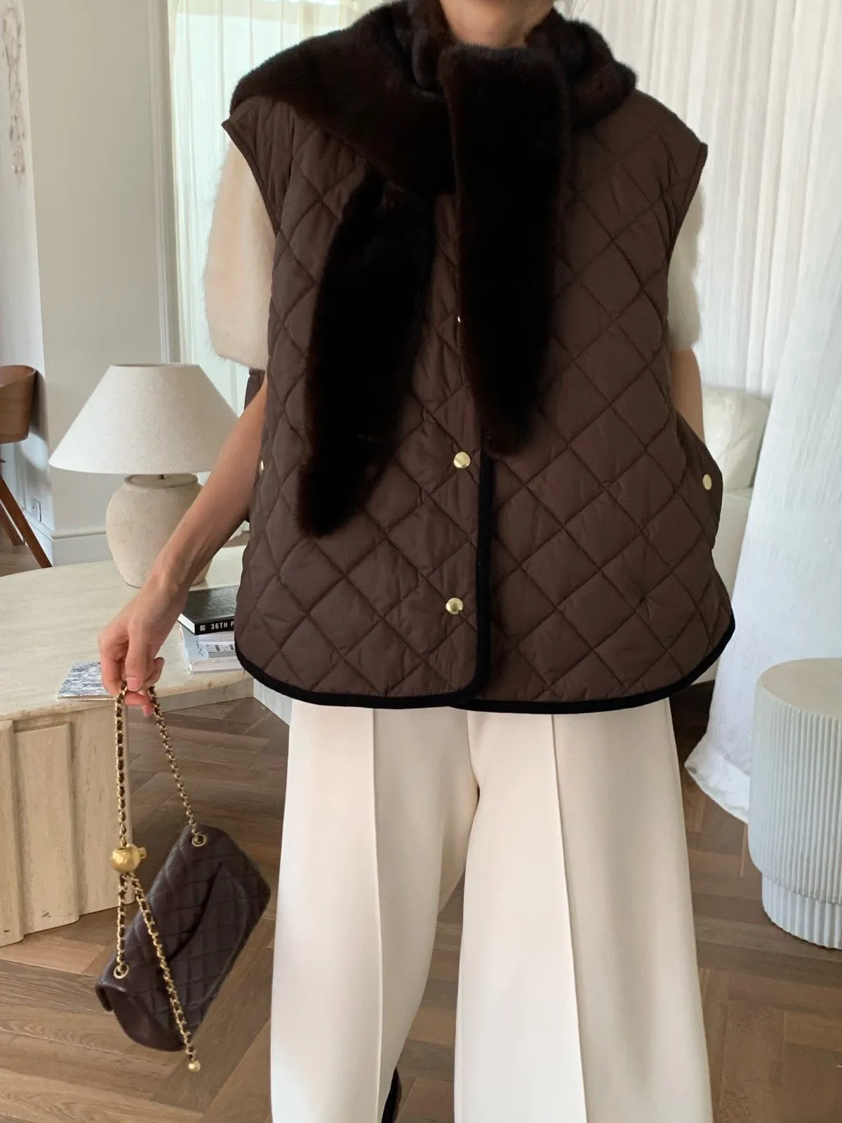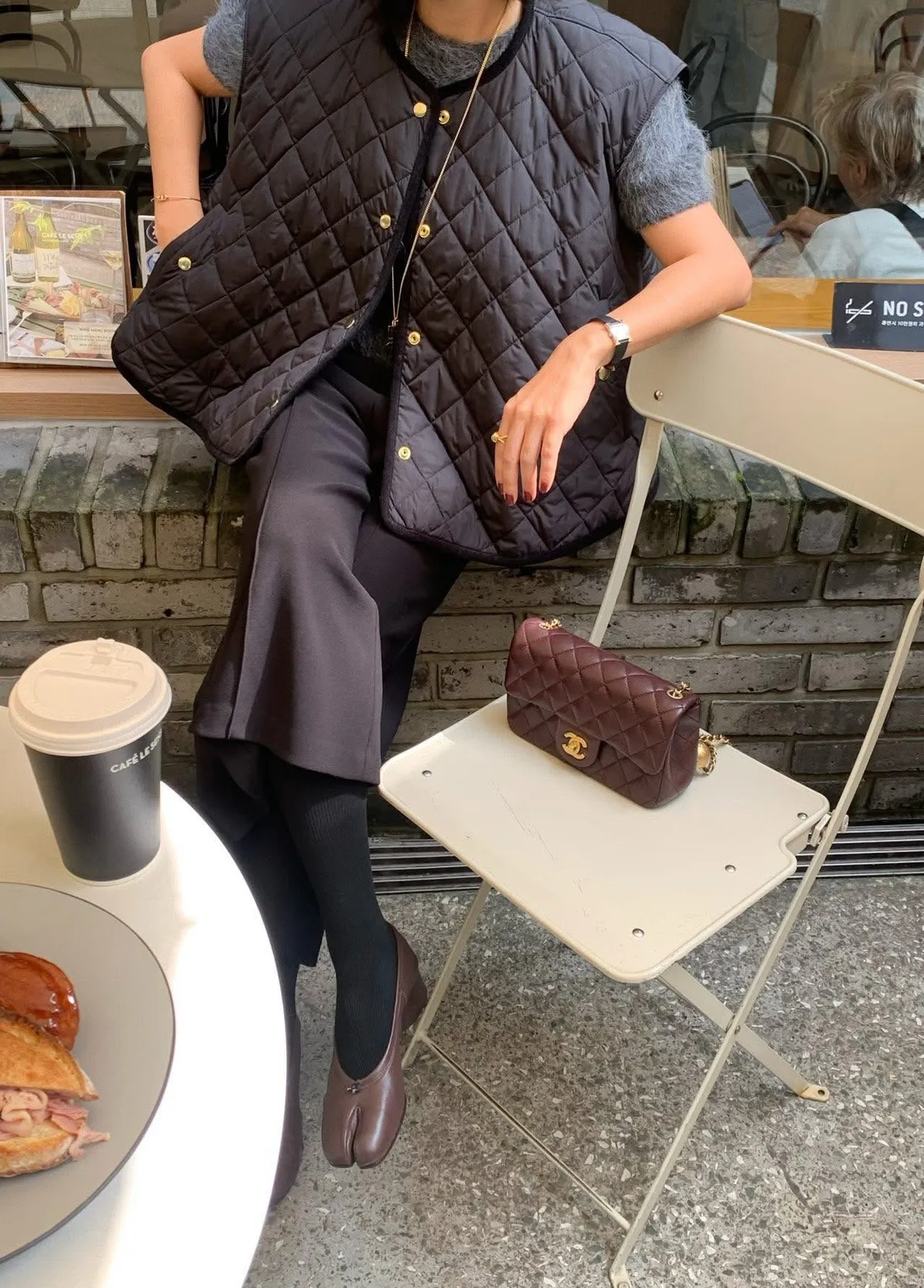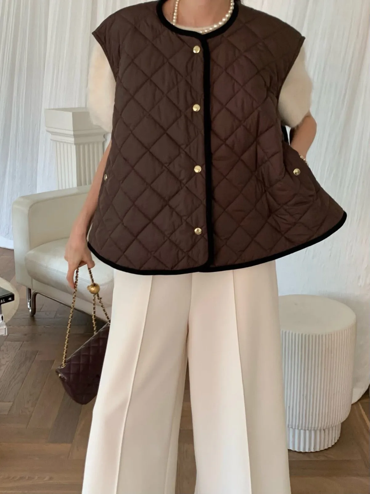 造型感極佳的 鑽石💎菱格紋鋪棉背心傘狀設計 Boxy fit 穿出別具一格的時尚品味秋冬最能體現個人時尚風格的單品經典的菱格紋再配上精密的縫線交織在絲滑且具深度的面料上高雅的質感立馬讓妳穿搭上升一個維度不分尺寸限制空媽自留款 ~超喜歡🤩🤩穿上立刻展現個人時尚風格🤩🤩🤩非常簡約大氣的時尚背心夾克